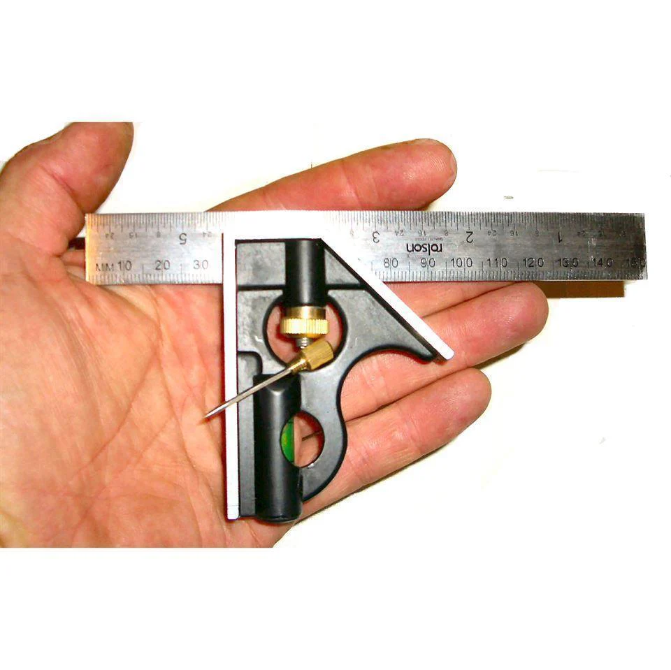 This compact 150mm combination square is perfect for marking tubes, panels, and ensuring accurate alignment. It features a built-in spirit level for levelling and a detachable scriber for precise marking.