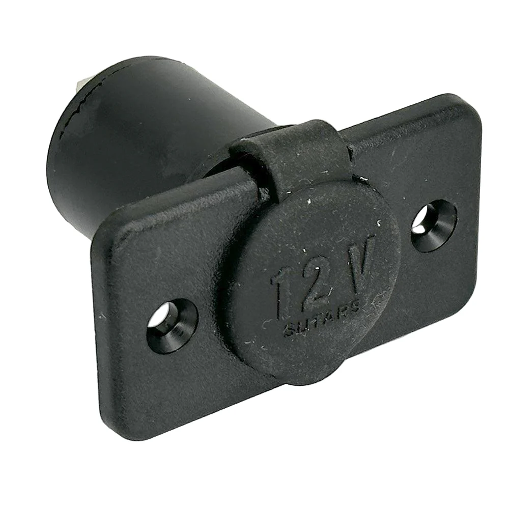 This 12V black rectangular power socket is a versatile and essential addition to any vehicle. Ideal for powering GPS devices, mobile phones and other accessories, this socket features a robust, low-profile and showerproof design. The flip-up rubber cover is easy to operate and protects the socket from dust and water damage, further enhancing its resilience.