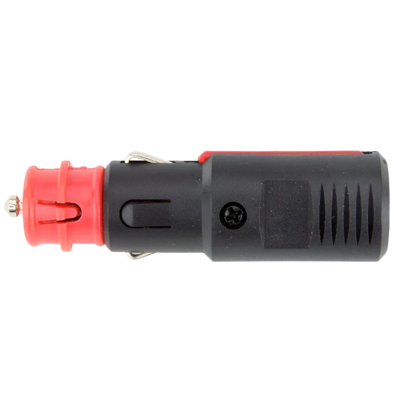 This versatile lighter plug lets you power your 12V car accessories like vacuums, battery chargers, or compressors by plugging directly into your vehicle's cigarette lighter socket. It is fitted with a removable red twist cap that reveals a DIN socket adaptor, allowing for broader compatibility with various devices.